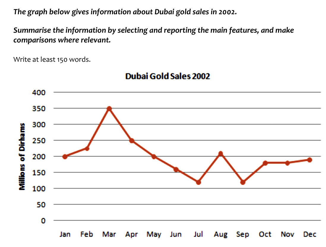Writing Task 1 exercise 1: Gold Sales in Dubai 2002